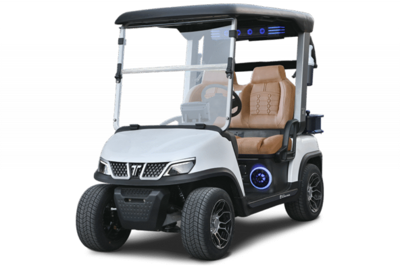 Experience the TARA Spirit Plus, a top-tier golf cart powered by lithium-ion and equipped with an optional GPS system, essential golf accessories, and comfort features like a luxury seat and sturdy aluminum canopy. Its adjustable steering, aluminum chassis, and disc brakes ensure superior control and durability, perfect for any golf course or turf friendly communities.